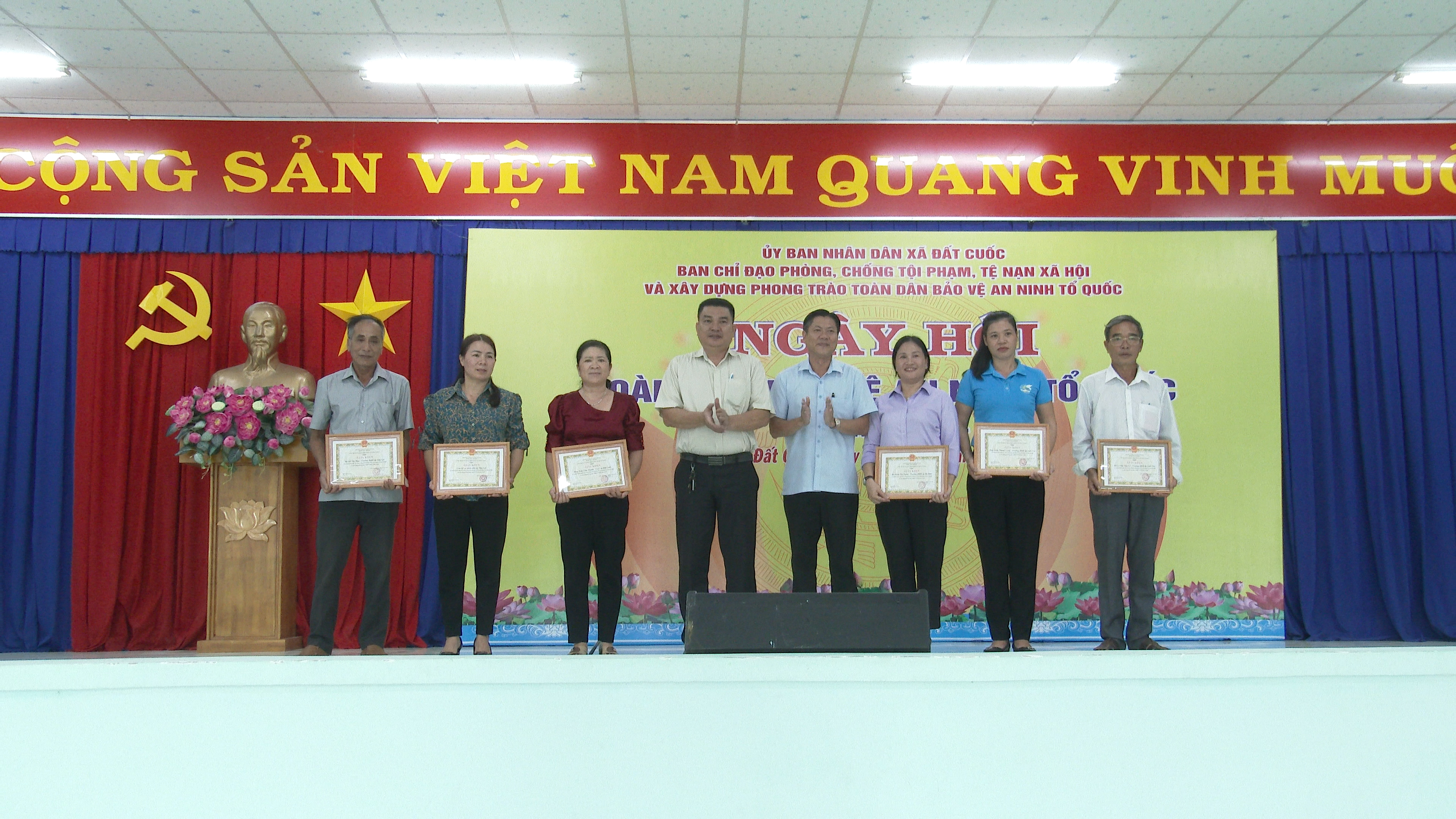 Cũng tại ngày hội, Ban tổ chức đã trao giấy khen của Chủ tịch UBND xã Đất Cuốc cho 1 tập thể và 7 cá nhân có thành tích xuất sắc trong phong trào toàn dân bảo vệ an ninh Tổ quốc.