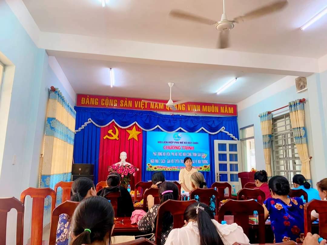 Chiều ngày 04/4/2024, tại Hội trường khối đoàn thể xã. Hội LHPN xã Đất Cuốc tổ chức Chương trình phát động HVPN thực hiện công trình dân vận "Ngôi nhà 3 sạch" gắn với tuyên truyền Luật Bảo vệ môi trường năm 2024. Tham dự chương trình có bà Lê Thị Thanh Nhanh – Chủ tịch Hội LHPN xã cùng hơn 45 Hội viên các chi hội phụ nữ trên địa bàn xã cùng tham dự