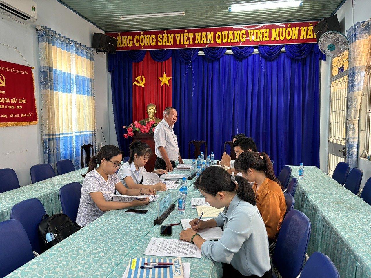 Tại buổi khảo sát, đại diện Ban tuyên giáo Đảng ủy xã Đất Cuốc đã báo cáo tình hình hoạt động và một số kết quả nổi bật trong thời gian qua như: Trong năm 2023, Ban Tuyên giáo Đảng ủy Đất Cuốc kịp thời định hướng công tác thông tin, tuyên truyền, triển khai, quán triệt các chỉ thị, nghị quyết của Đảng nghiêm túc, tình hình tư tưởng của cán bộ, đảng viên và Nhân dân ổn định, đồng thuận với các chủ trương của Đảng, chính sách pháp luật của Nhà nước. Công tác nắm bắt, phản ánh và định hướng tư tưởng, dư luận xã hội được thực hiện thường xuyên, lan tỏa thông tin tích cực và hiệu quả. Xây dựng lực lượng nhận diện, tham gia đấu tranh, phản bác thông tin xấu độc và lan tỏa thông tin tích cực trên internet và mạng xã hội; duy trì hoạt động trang thông tin của Đảng ủy xã và các đoàn thể, thường xuyên đăng tải tin bài thông tin các hoạt động của địa phương trên cổng thông tin của xã theo địa chỉ datcuoc.bactanuyen.binhduong.gov.vn; Ban tuyên giáo tham mưu Đảng ủy ban hành 9 kế hoạch triển khai thực hiện các nhiệm vụ và 7 Quyết định củng cố, kiện toàn các Ban, tổ phụ trách công tác; Tổ chức sơ kết giữa nhiệm kỳ thực hiện Nghị quyết Đại hội Đảng bộ xã lần thứ IV, sơ kết 3 năm thực hiện kết luận số 01-KL/TW của Bộ chính trị; tổ chức 2 buổi trực tuyến và trực tiếp học tập chuyên đề về Bác năm 2023, kết quả có 134/145 đảng viên tham dự.