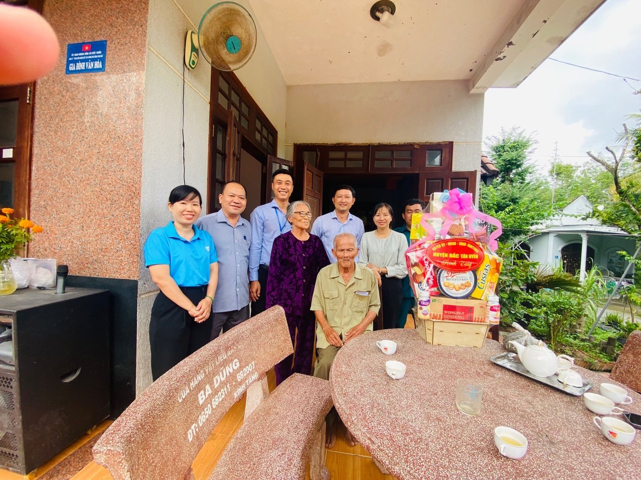 Trong dịp này Đoàn đã đến thăm và tặng 8 phần quà cho 8 gia đình chính sách của địa phương, trong đó quà của Tỉnh là 2 phần, còn lại là quà của Huyện với tổng số tiền là 25 triệu đồng.
