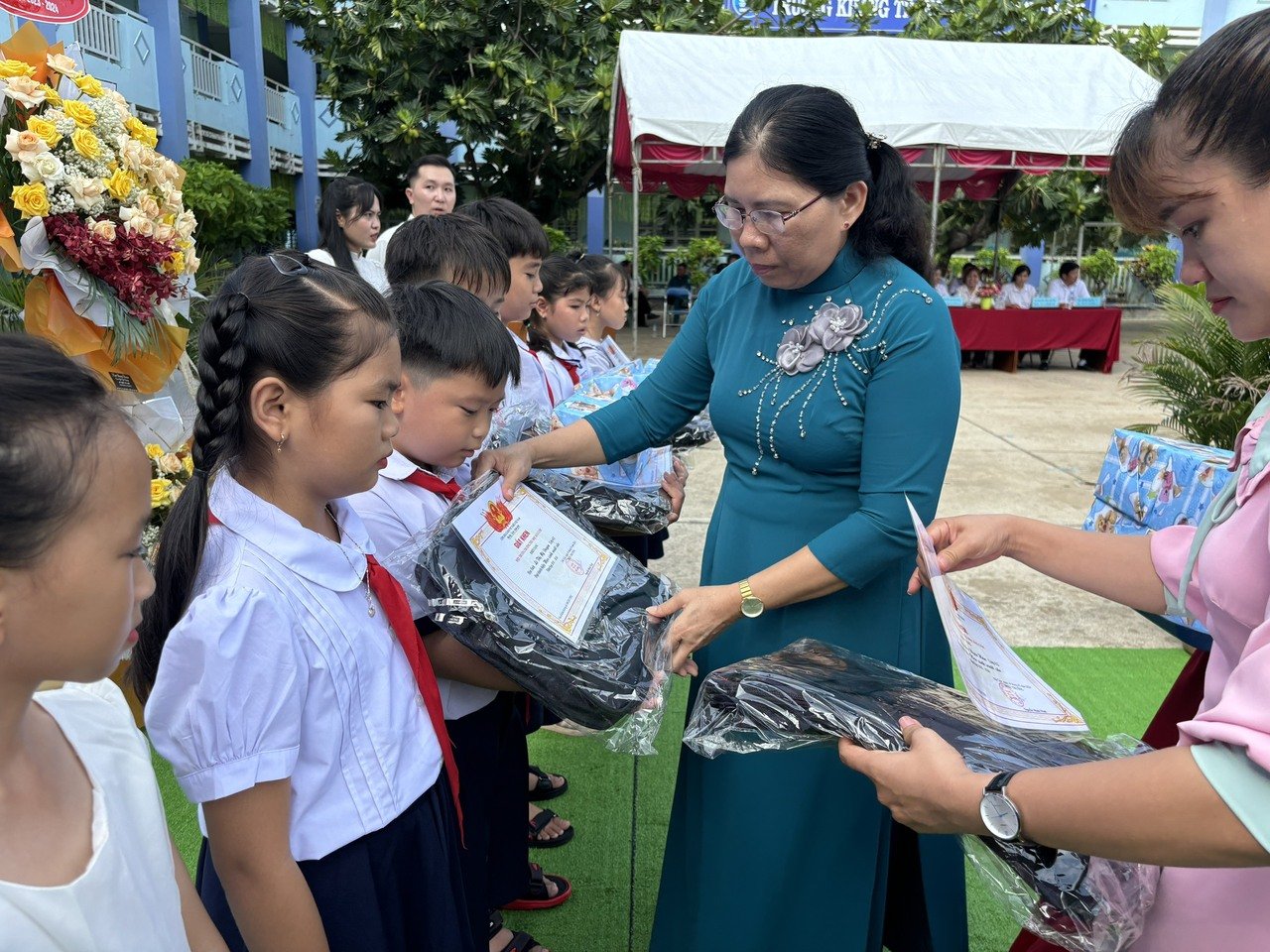 Tại lễ tổng kết, nhà trường công bố quyết định và trao khen thưởng cho các học sinh đạt thành tích học sinh giỏi, xuất sắc năm học 2023 – 2024. Đồng thời, trao học bổng, quà tặng của các mạnh thường quân cho 60 em học sinh xuất sắc vượt khó trong học tập.