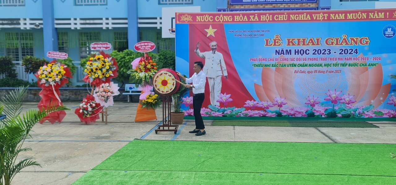 Kết thúc buổi lễ, thầy Nguyễn Minh Nhựt - Hiệu trưởng nhà trường đã đánh những tiếng trống rộn ràng báo hiệu một năm học mới bắt đầu. Tiếng trống vang xa như mang theo những hi vọng một năm học mới thành công rực rỡ với thật nhiều thành tích của cả thầy và trò trường Tiểu học Đất Cuốc.