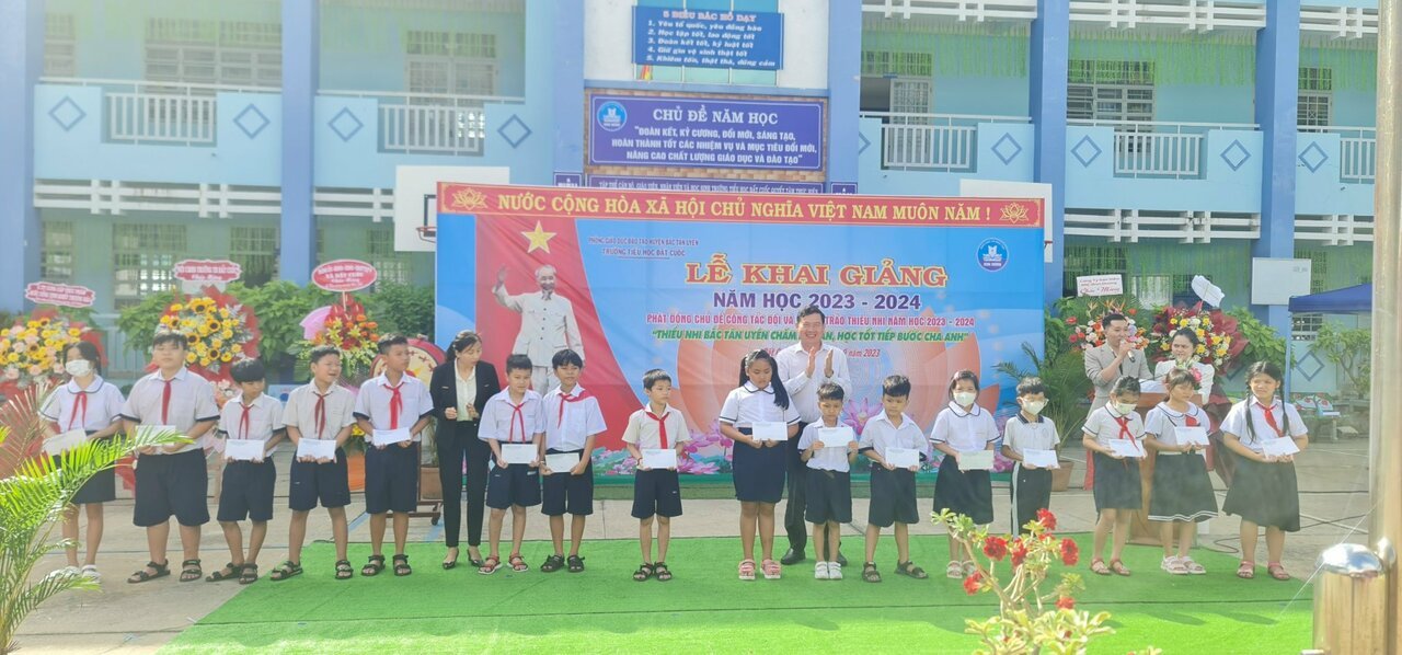 Tại buổi lễ lãnh đạo huyện đã trao học bổng cho 06 em học sinh có hoàn cảnh khó khăn, trẻ mồ côi, khuyết tật và con bệnh nhân nghèo đến trường tổng số tiền 6 triệu đồng do quỹ vì người nghèo huyện Bắc Tân Uyên tặng.