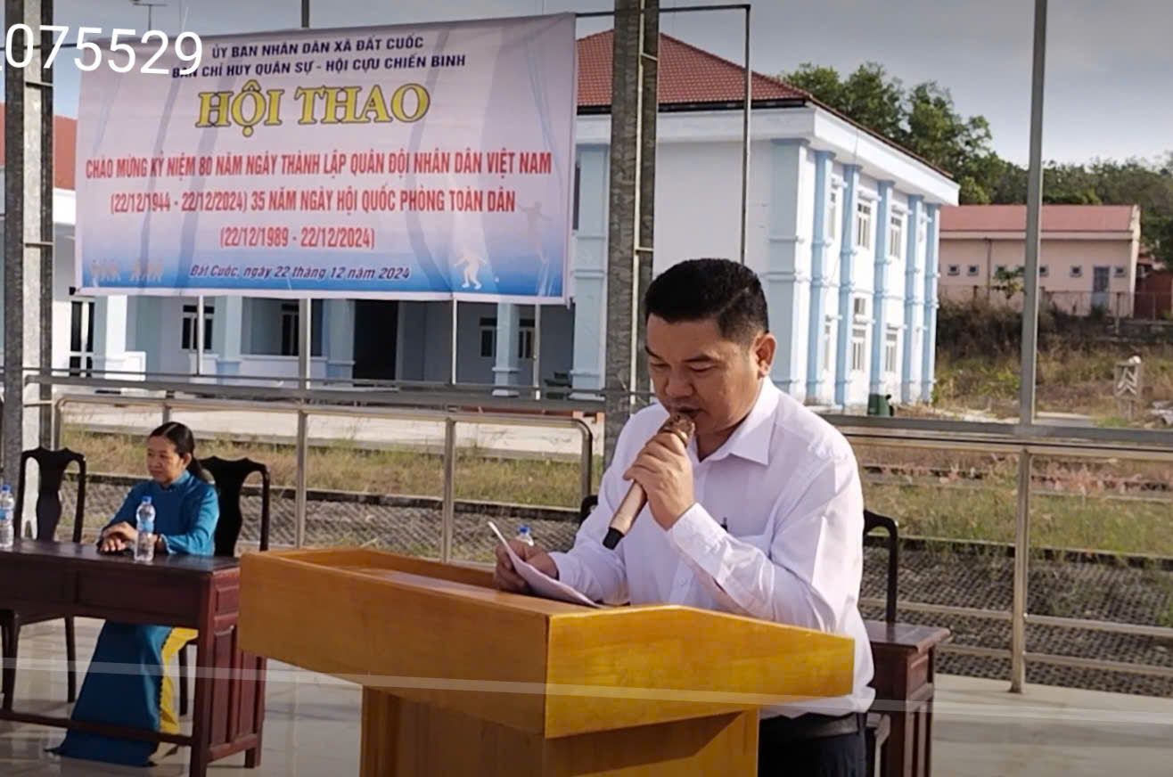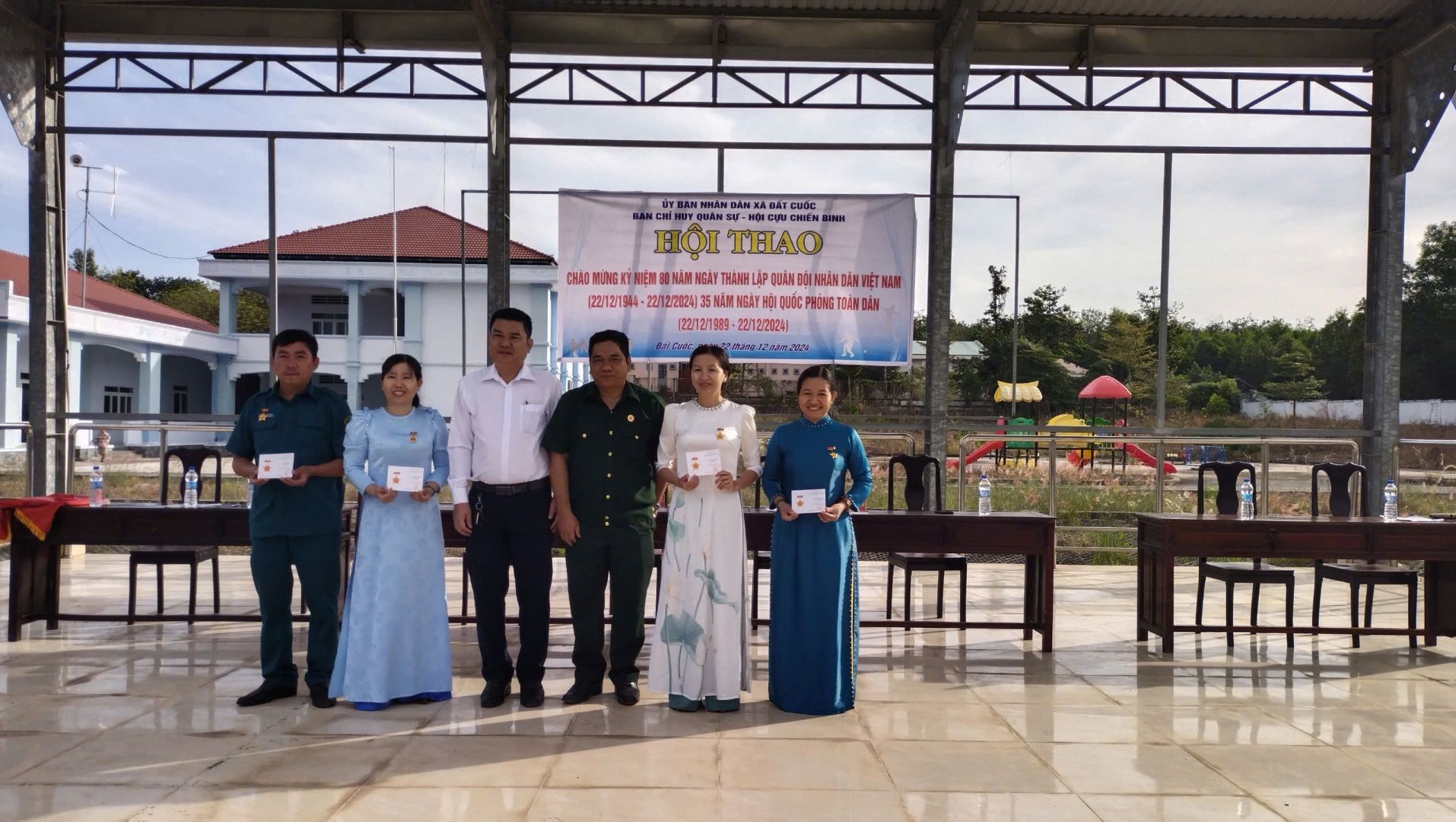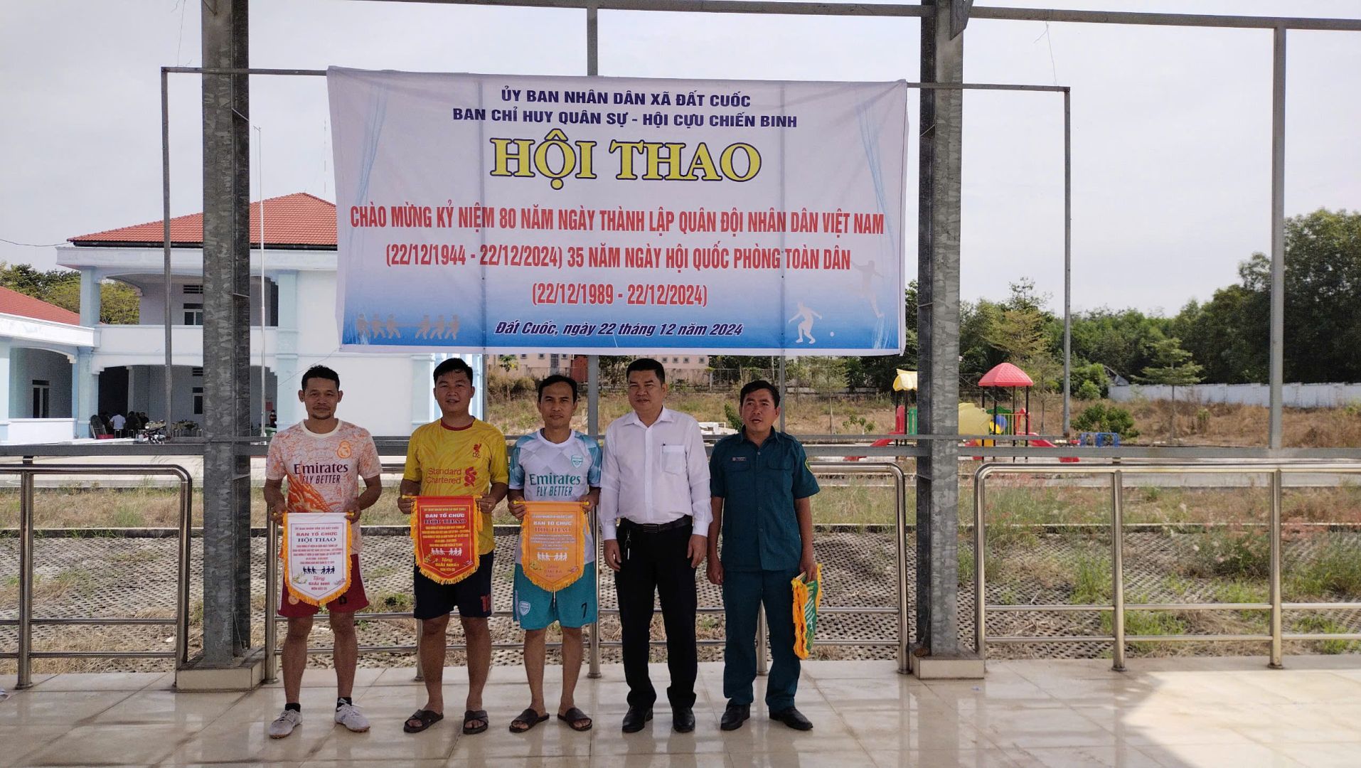 Sáng ngày 22/12/2024, tại Trung tâm văn hóa thể thao và Học tập cộng đồng xã, Ủy ban nhân dân – Hội Cựu chiến binh – Ban Chỉ huy Quân sự xã Đất Cuốc tổ chức Hội thao gồm 3 môn Bóng đá mini, Kéo co, Bi sắt chào mừng kỷ niệm 35 năm Ngày thành lập Hội Cựu chiến binh Việt Nam (06/12/1989 – 06/12/2024) và 80 năm Ngày thành lập Quân đội Nhân dân Việt Nam (22/12/1944 – 22/12/2024).