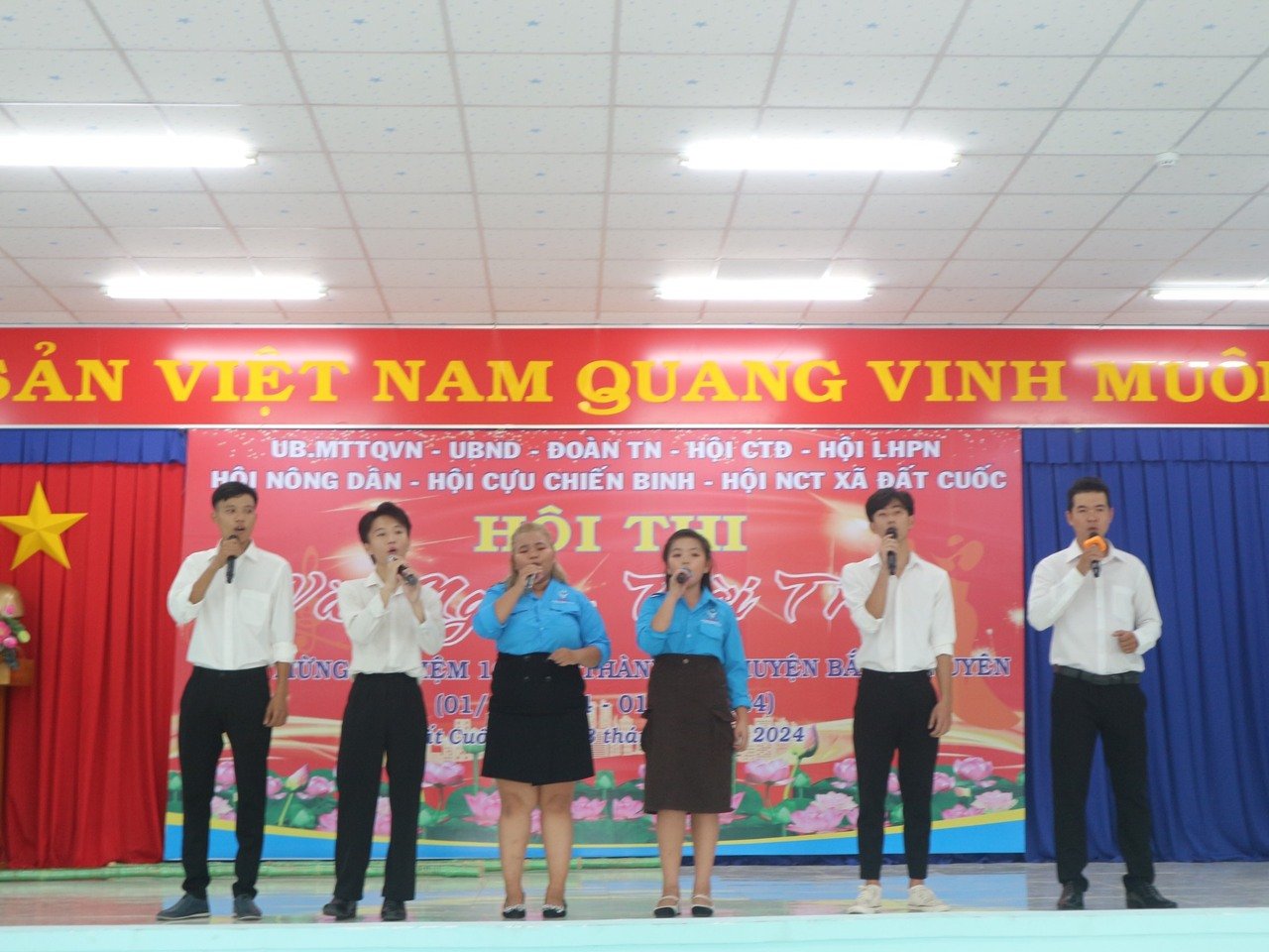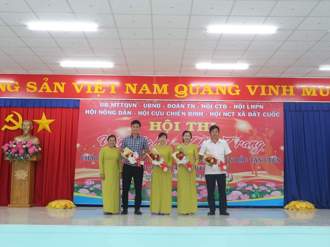 Chiều ngày 03/03/2024, Uỷ ban MTTQ Việt Nam xã Đất Cuốc phối hợp UBND xã, các Tổ chức thành viên, tổ chức Hội thi Văn Nghệ - Thời trang chào mừng kỷ niệm 10 năm thành lập huyện Bắc Tân Uyên (01/4/2014 – 01/4/2024), chào mừng thành công Đại hội Đại biểu MTTQ Việt Nam xã Đất Cuốc lần thứ V, tiến tới chào mừng Đại hội MTTQ Việt Nam các cấp nhiệm kỳ 2024 – 2029. Tham dự Hội thi có Bà Nguyễn Thị Thu Hằng – PBT Đảng ủy – CT HĐND - Trưởng Khối Vận; Ông Đinh Trọng Tứ - ĐUV - PCT HĐND xã, Ông Nguyễn Văn Sao - PCT UBND xã, các Ông, Bà là Trưởng các đoàn thể xã, Trưởng BĐH các ấp, Trưởng, Phó Ban CTMT ấp, cùng hơn 150 thí sinh đến từ Câu lạc bộ VHVN 4 ấp cùng tham gia dự thi và cổ vũ.