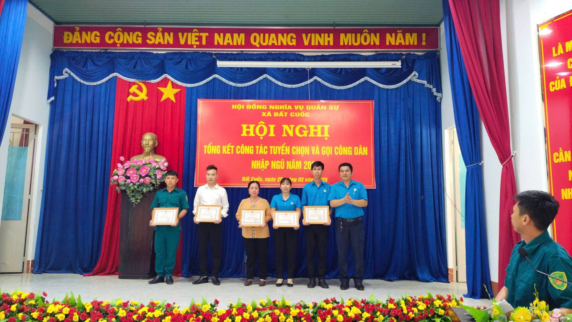 Tại hội nghị, UBND xã đã trao tặng khen thưởng cho 06 tập thể và 11 cá nhân có thành tích xuất sắc trong công tác tuyển chọn gọi công dân nhập ngũ và Hội trại tòng quân năm 2025.