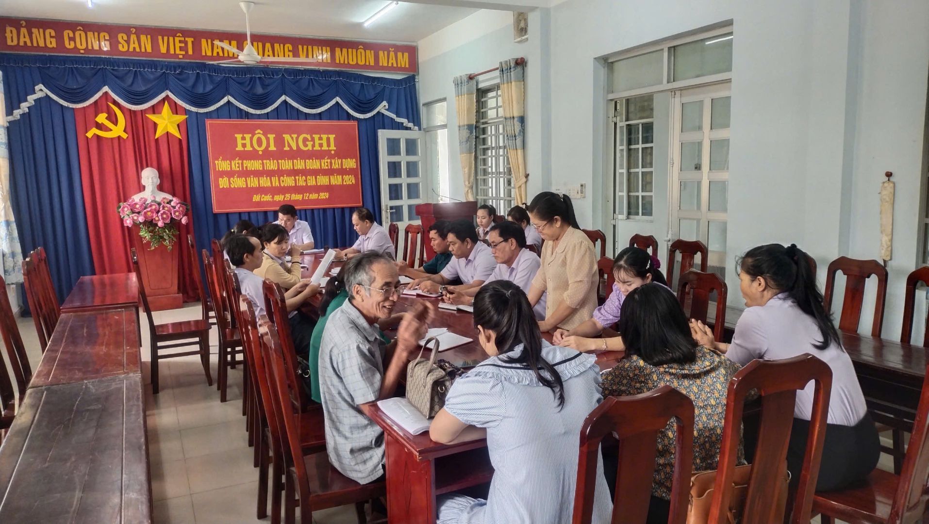 Chiều ngày 25/12/2024, Ban chỉ đạo phong trào “TDĐKXDĐSVH” và công tác gia đình xã Đất Cuốc tổ chức Hội nghị tổng kết phong trào "Toàn dân đoàn kết xây dựng đời sống văn hóa" và công tác gia đình năm 2024 triển khai kế hoạch năm 2025. Đồng chí Nguyễn Ngọc Tâm – PBT Đảng ủy – Chủ tịch UBND – Trưởng ban chỉ đạo xã dự và chủ trì hội nghị